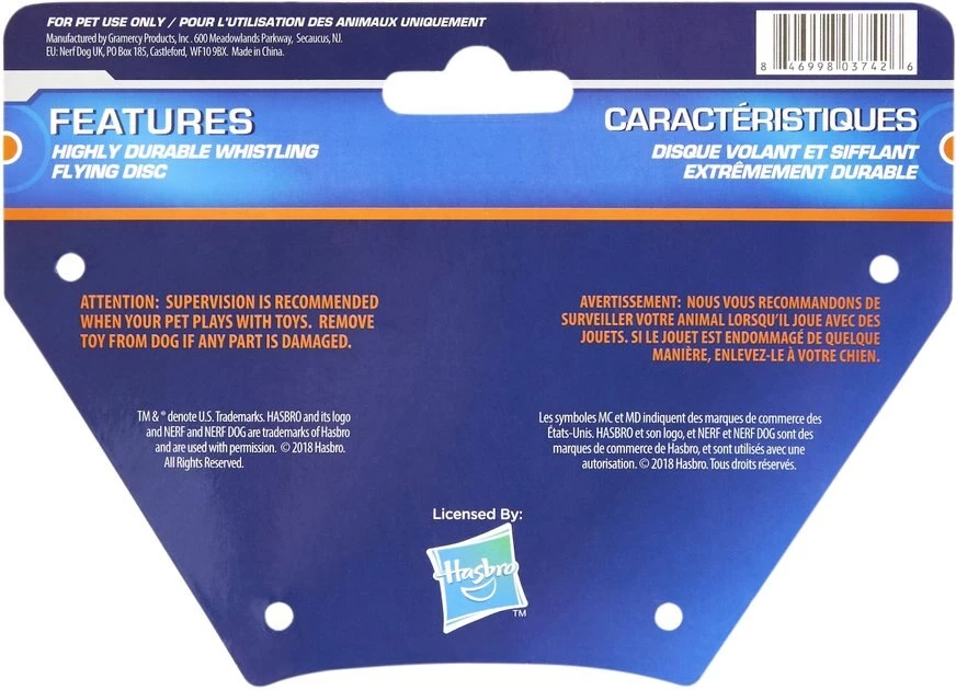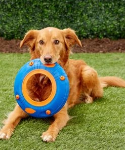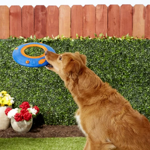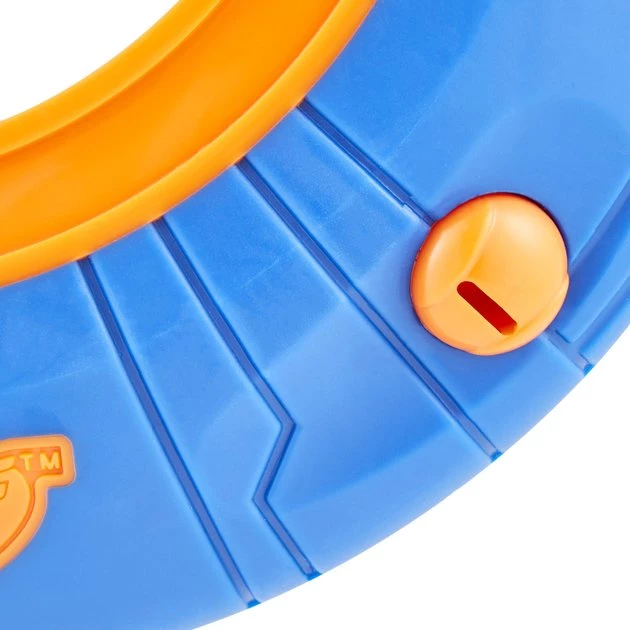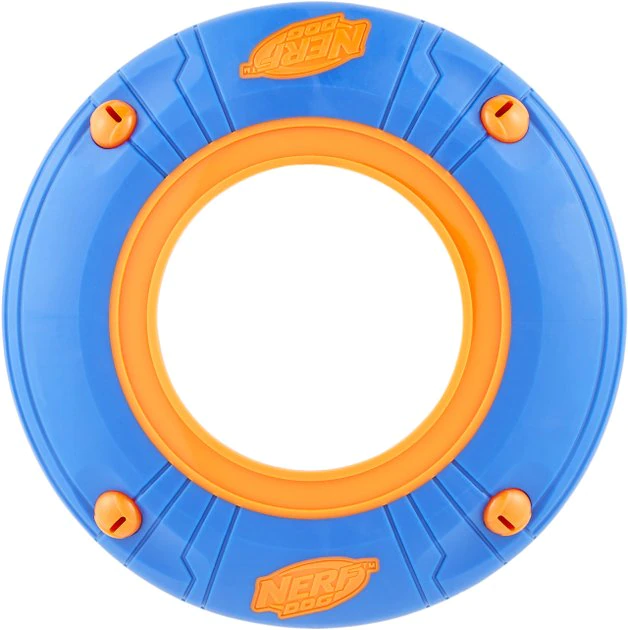 Give your energetic pal a durable toy optimized for a good game of toss and fetch with the Nerf Dog Atomic Howler Whistling Flyer Disc Dog Toy. The blue and orange disc makes an exciting whistling sound that dogs love. The donut-shaped toy is strong and durable enough for hours of playtime. The ridged rim makes it easy for your pal to grip. It’s made of lightweight thermoplastic rubber and plastic, so your dog can have action-packed fun. Plus, thanks to its waterproof design, it’s ideal for water-loving pups at the beach, lake, pool or your favorite spot!
