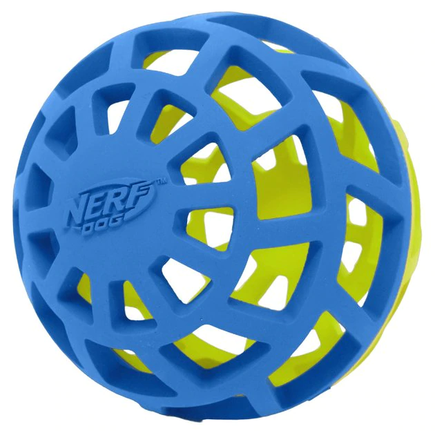 Put a treat inside for a paw-some, gripping adventure with the Nerf Dog EXO Ball Dog Toy! This rubber ball features a hollow interior that can be filled with a treat for a serious playtime upgrade and is rubber-framed to make it especially easy to hold with paws or teeth. It’s designed to last through hours of fetch and extended chewing, whether you’re playing together or he’s having fun on his own. After game time is through, clean it up easily by popping it in the dishwasher.