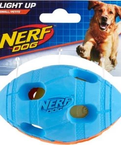 Go long with your energetic pal with the Nerf Dog Light Up Bash Football Dog Toy. This unique, football-shaped bounce fetch toy will provide hours of action-packed fun thanks to a flashing LED light inside that makes running after it that much more exciting—from sun up to sun down. Built with durable materials like thermoplastic rubber to withstand extra tough play, and lightweight enough for on demand games of fetch, it’s ideal for active pups and to provide much-needed exercise for dogs that need more encouragement. Plus, thanks to its high-buoyancy design, it’s ideal for water loving pups at the beach, lake, pool, or your favorite spot!