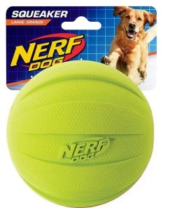 Turn up the volume on playtime with the noisy action of the Nerf Dog Squeak Ball Dog Toy. This play-ready ball comes with a built-in squeaker for the loud fun dogs love. Made with durable rubber, it can stand up to some pretty tough chasing, bouncing and tossing—which means it’s great for playing fetch. It’s designed with a unique hexagon pattern that makes it easy to grip, even when it gets slobbery! Plus, it’s made of water-resistant, food-grade, 100% non-toxic rubber for longer-lasting play.