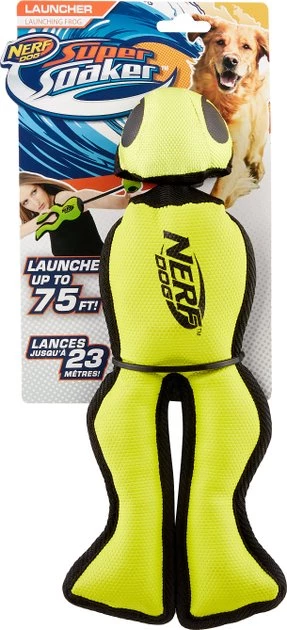 Give your energetic pal a toy optimized for extra-high launching and fetching with the Nerf Dog Super Soaker Launching Frog Dog Toy. This frog-shaped toy provides hours of interactive play. Simply pull the frog head to launch it with the elastic slingshot – up to 25 yards! Then watch your pup chase after it for hours on end, providing enriching play and much-needed exercise. It’s built with special, high-performance materials like thermoplastic rubber. Because it also floats on water, it’s the perfect take-along toy for the beach, pool, lake, or your favorite water play spot.