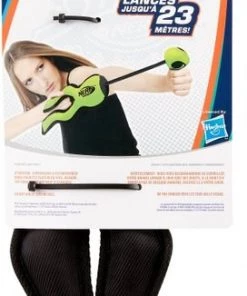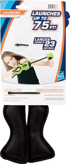 - High-flying dog toy with slingshot can be launched up to 25 yards for fetching.