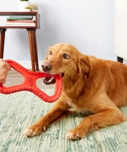 Give your energetic pal a durable toy optimized for extra-tough tugging and roughhousing with the Nerf Dog Tire Infinity Tuff Tug Dog Toy. Thanks to its unique design, the durable rubber body is perfect for action-packed games of tug your pal can enjoy with you, or with other friendly pups. It’s built with high-performance rubber to stand up to extended rounds of fetch and tugging, so it’s the go-to toy for active pups. When it’s time to relax and store the toy, cleaning doggie drool and dirt is a cinch by just hand washing or wiping away. Plus, it has an ultra-grip tire tread texture that makes it easier for you and your dog to grip.