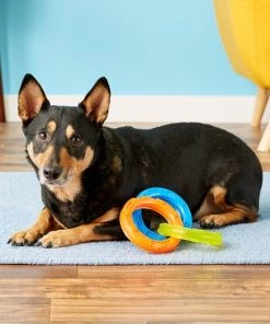 - Perfect for tug of war for small to medium size dogs with two durable and colorful rubber rings.