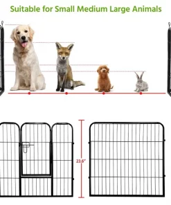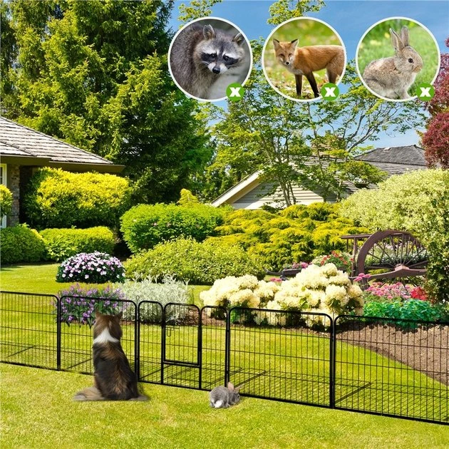 Unleash your furry friend for some ruff-and-tumble fun in the Yaheetech 24-in 16 Panel Dog Exercise Pen. This heavy-duty playpen is an ideal place for your dog—or maybe even your duck or rabbit pal—to stretch her legs and play. It’s constructed with premium powder-coated iron panels and features ground stakes to keep the pen securely in place while your pal romps around. The 16 panels can be easily moved around and adjusted to different shapes and sizes. It also includes a hinged door and door latch to make exiting and entering even easier. This spacious pen creates a great place for your pal to blow off some steam—either inside or in the great outdoors!