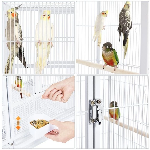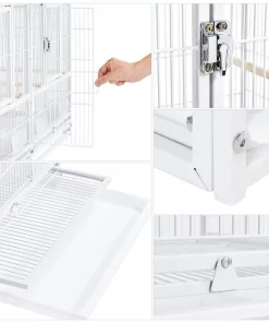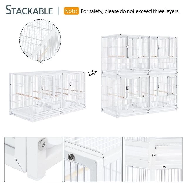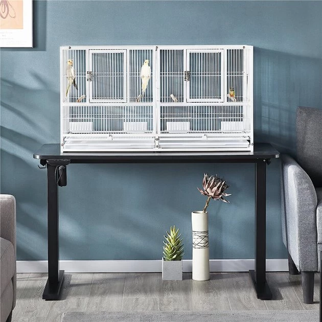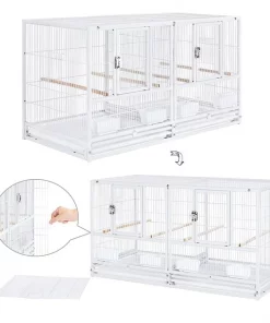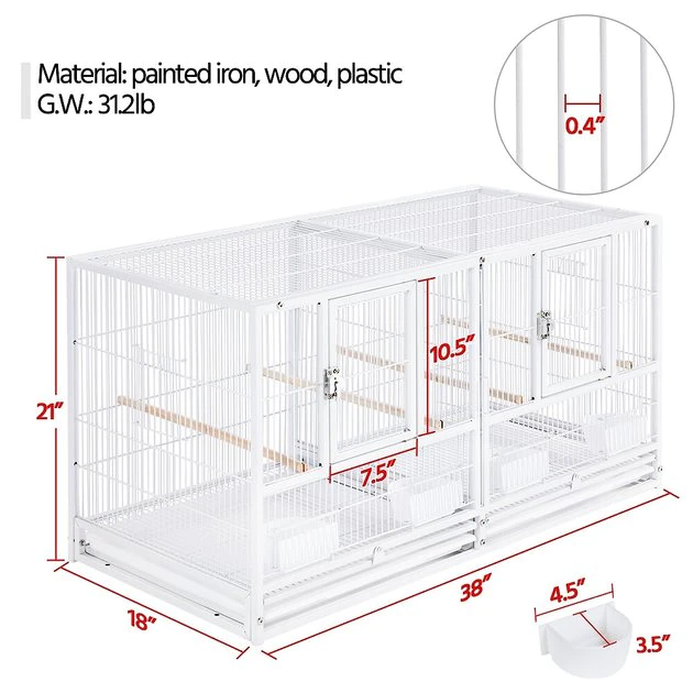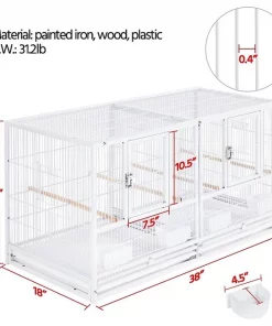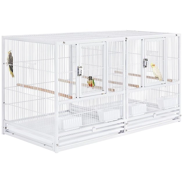 The Yaheetech 18-in Wide Stackable Divided Breeder Cage offers you the opportunity to house all of your feathered friends in one area. Use the removable dividing grate to establish two smaller birdcages or just one large cage for more space. Being a pet parent has never been easier, with a pull-out grate that captures waste and a design that allows you to stack your breeding cages to make use of the vertical space. With four perches, four feeders, lockable doors, side doors for nesting, removable trays and grates, you have everything you need to care for your singing sweethearts. The cage is made from wrought steel and paint that’s resistant to rust and water to help hold up to plenty of use.