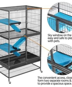 Procure the perfect palace for pint-sized pets with the 2-Story Removable Ramp & Platform Small Pet Cage from Yaheetech! Constructed with strong metal and a rust-resistant finish, this comfortable cage is the perfect size for ferrets, chinchillas, guinea pigs, hedgehogs, kittens and more. Every door is secured with a lock to help keep your little pal safe, while all ramps and platforms come with soft fabric covers that help protect your pets’ feet. And thanks to its 360-degree swivel wheels, sliding bottom plastic tray, and convenient storage shelf—this cage contains everything you need for a cozy stay.