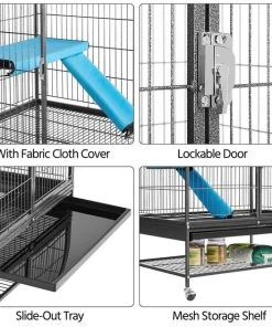 - Includes a metal open shelf under the cage to help keep pet food and cleaning tools handy.