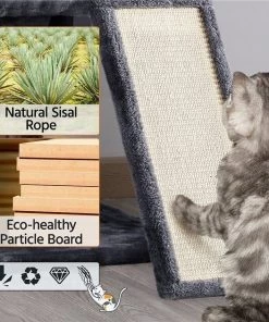 - Multi-level tower includes 2 scratching posts and a scratching board covered by sisal ropes.