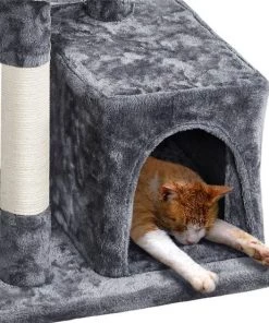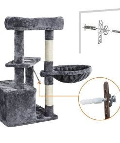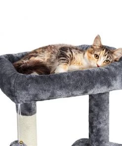 Give your feline friend his very own abode with the Yaheetech 33-in Plush Cover Cat Tree. This cat tree features a condo, a basket, a platform and a nest so that your cats have multiple places to play and lounge. It comes with a strap attached, which can be used to fasten the tree to a wall. Several kittens or one medium-sized adult cat can play on this cat tree at once. Plus, an elastic ball and a scratching board are included for added fun.