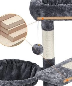 - Features a condo, a basket, a platform and a nest so that your cats have multiple places to play and lounge.
