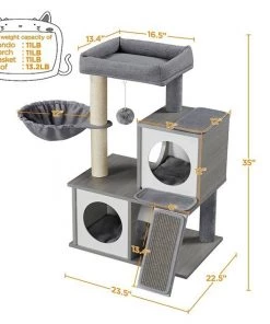 Keeping your cats entertained when you’re away from home is in your best interest and theirs–that’s where the Yaheetech 35-in Felt Cat Tree comes in. This cat tree features multiple levels with two condos, one perch, one basket and scratching surfaces. Your cats will love to hide, sleep, lounge, and play here all day.