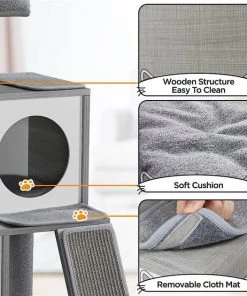 - Multiple levels with 2 condos, 1 perch, 1 basket and scratching surfaces.