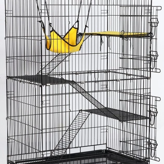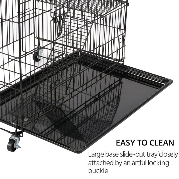 Create the ideal cat-centric crate with the 4-Tier Metal Cat Cage from Yaheetech! Featuring a metal mesh structure for improved safety and comfort, this 4-tier cage can stand up to even the most destructive of kitties. It includes a pull-out plastic litter tray for increased cleaning convenience, and its enlarged ramps and platforms help provide additional safety and comfort. It even sits on four 360-degree locks, which contribute to this cat cage’s excellent mobility and overall security.