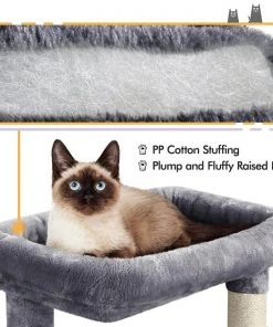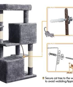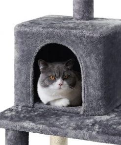 An interesting layout is a must when you’re trying to keep feline friends entertained with a cat tree–and that’s just what you’ll get with the Yaheetech 46.5-in Plush Cat Tree. It features a top perch, two enclosed condos, a basket, and a small extended platform. Durably constructed and finished with cozy plush fabric, this cat tree is equal parts sturdy and comfortable.