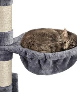 - Four sisal scratching posts help keep cats’ claws healthy.