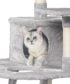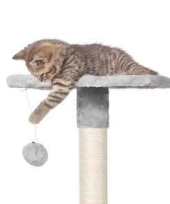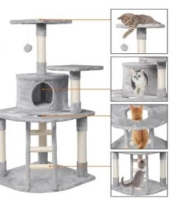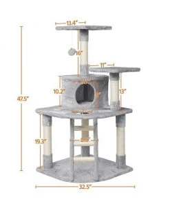 Let your favorite felines play in the lap of luxury with the Yaheetech 47.5-in Plush Cat Tree and Condo, Light Gray. This spacious multi-level tower is purr-fect for one or two smaller kitties—providing lots of places to climb, play and relax. The detachable and dangling fur ball gives your kitties some excitement and fun while the sisal-covered ladder is great for climbing practice. It features two fluffy perches and a spacious condo so your kitties can lounge or snooze after a fun day of play. The soft and plush fabric and the high-quality particle board with skin-friendly fabric covering helps make sure your kitties feel cozy and comfy no matter where they sit. And the reinforced base with anti-toppling fittings help keep your fur babies safe while they play the day away. It’s a paw-sitively great way to give your energetic pals an entertaining and exciting spot to enjoy!