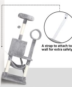 - 51-inch cat tree features a large 19.3 x 19.3-in. baseboard to ensure stability, while the included safety strap attaches to the wall for added support.
