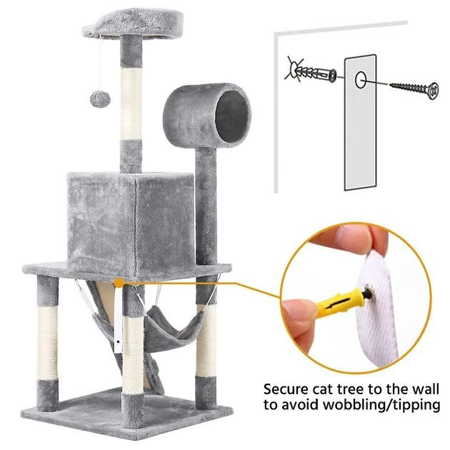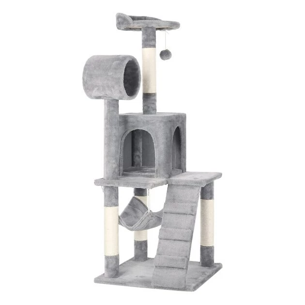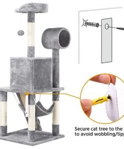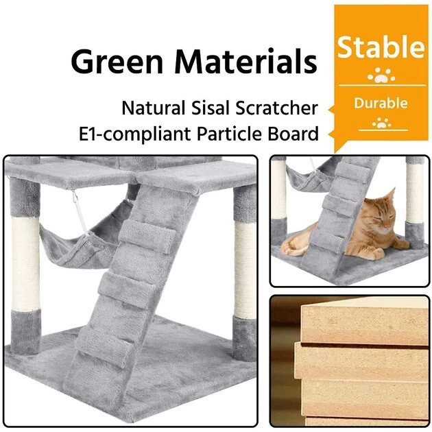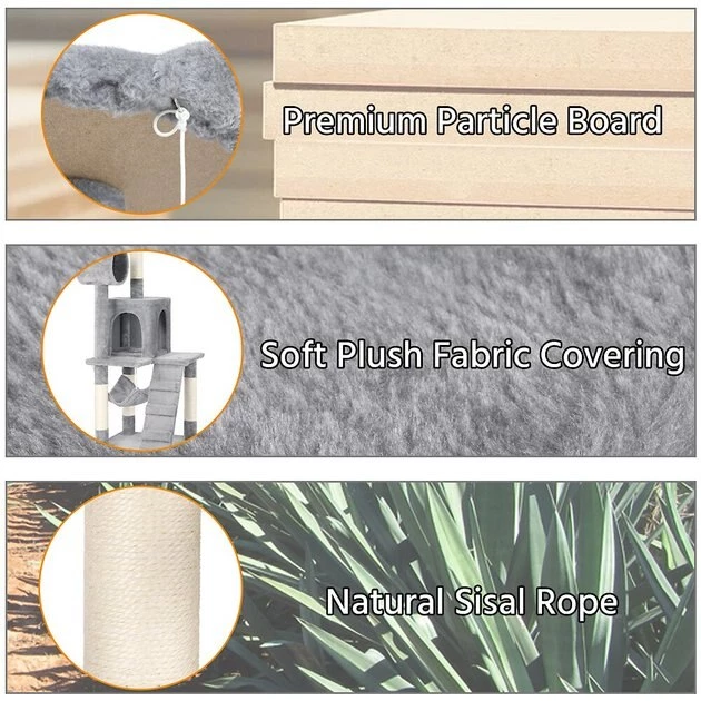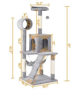 Give your tiny feline adventurers a new spot to explore with the Yaheetech 51-in Multi-Cat Tree and Condo. This multi-level cat tree is perfect for one or two smaller cats or kittens to pounce, play or nap. Your kitties can burrow through the included tunnel and climb up the ladder before taking a sweet snooze in the fluffy condo or the warmth of the cozy hammock. Multiple scratching posts covered with natural sisal rope help your kitties build good scratching habits—and help keep them away from your furniture! This activity center is also made with tear-resistant plush fabric and high-density particle board so your kitties to help your kitties stay comfortable and safe while enjoying a purr-fectly playful day!