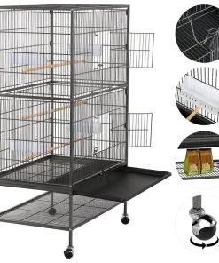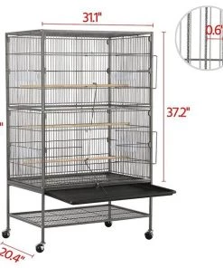 See your sidekick spread his wings with the Yaheetech 52-in H Large Bird Rolling Cage. This extra-large bird cage features an open top design for playtime with your pal. It is constructed to be ultra-strong using premium metal that’s coated with non-toxic hammertone paint for excellent rust and water-resistance. This parrot cage includes stainless steel feeding bowls, secure door locks and two solid wood perches. It is built on four heavy-duty rolling casters that can move your mini mate in any direction.