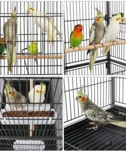- Includes stainless steel feeding bowls, secure door locks and solid wood perches.