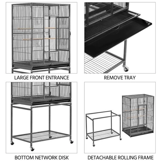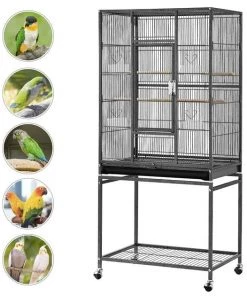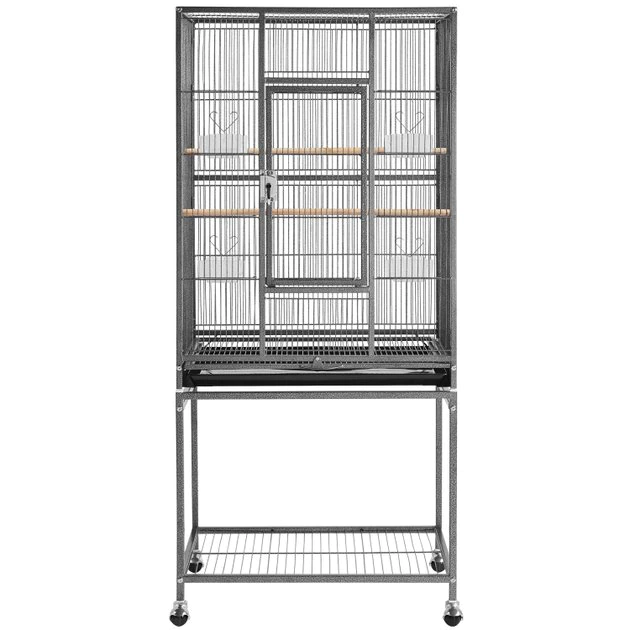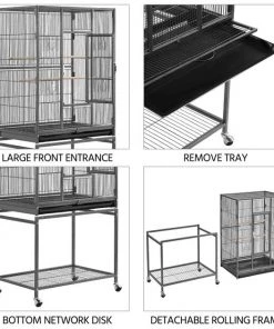 Give your feathered family room to grow with the Yaheetech 53.7-in Parrot Bird Cage & Stand. This rolling bird cage with stand is constructed using premium metal that’s treated with non-toxic, hammertone paint for excellent rust and water-resistance. It features a front door secured with a crescent lock and arc-shaped wire on each small door to keep your sidekicks safe. This bird cage includes a stand with 360-degree, smooth-rolling swivel casters that can be removed and attached directly to the cage itself. It’s great for all types of birds, canaries, finches, parrots, conures, cockatiels and more as well as other small critters such as sugar gliders and chinchillas.