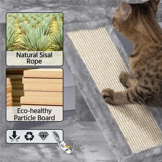 - Features 2 condos for a special sleeping spot and 3 perching platforms for climbing and exploring.