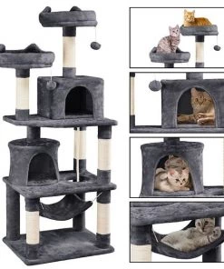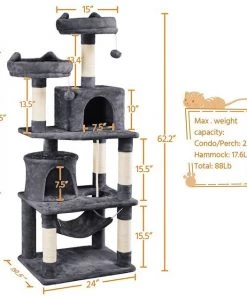 - Features plush perches, spacious condos and a hammock so that your kitties have multiple places to lounge and get some alone time.