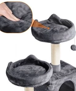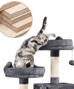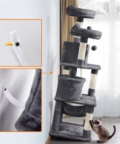 Help keep your feline friends endlessly amused with the Yaheetech 62.2-in Multi-Level Cat Tree. This cat tree is made with sisal and a cozy fabric covering so that your cats have a comfortable place to chill out. It features plush perches, spacious condos and a hammock so that your kitties have multiple places to lounge and get some alone time. It also includes six sisal scratching posts to promote healthy scratching habits, and two interactive bouncing cords with dangly furballs and sisal twine for added playtime fun. Plus, this cat tree’s sturdy design helps ensure that your cats have a safe abode.