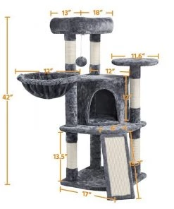 - Features plush perches, spacious condos and a hammock so that your kitties have multiple places to lounge and get some alone time.