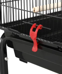 This bird cage is designed for small size birds. Please check that whether the cage size fits your bird before placing an order. The color of the toy accessories sent at random. Please remove the red side buckles when placing the cage on the rolling stand.