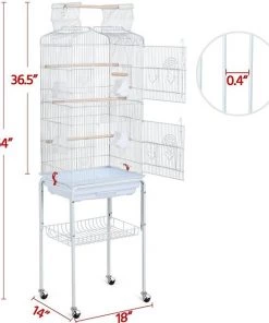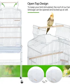 The Yaheetech 64-in Open Top Metal Parrot Cage with Detachable Rolling Stand helps your beaked buddy stay sociable and secure! This roomy cage is designed to hold several small to medium-sized birds, or give one special friend his own personal palace. The interactive play top lets your feathered friend pop up to stretch his wings and say hello. Smooth-rolling casters make it easy to reposition the cage indoors or outside on a beautiful day. Plus, the convenient slide-out tray makes cleanups a breeze.