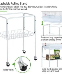 - Cage sits on 360-degree swivel, smooth-rolling casters for easy movement—or remove the upper cage or stand for a more secure fit.