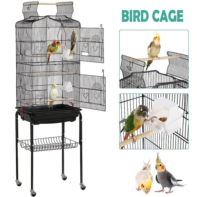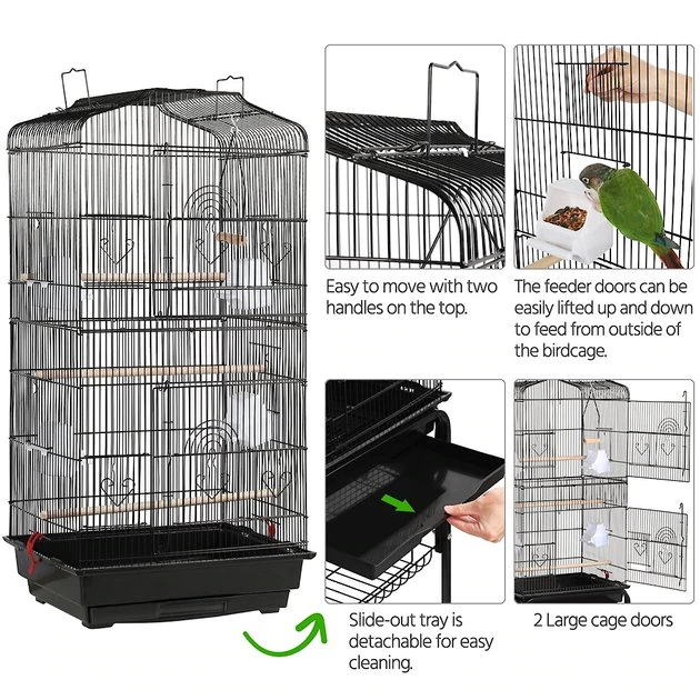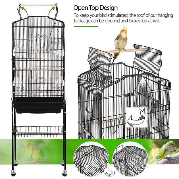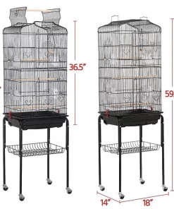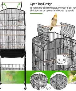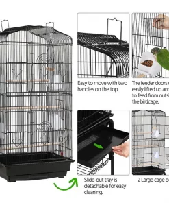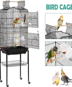 Keep your sidekick safe and secure with the Yaheetech 64-in Rolling Bird Cage. This large bird cage features four polished wooden perches and four eco-friendly feeders for your feathered friend. It includes two side-opening composite doors, slide-out trays and a detachable mesh panel for easy cleaning whenever needed. This rolling bird cage is constructed with a smooth, fully painted surface and equipped with wire door locks for the safety of your sidekick. It is crafted for convenience with a carrying handle on top and a smooth-rolling detachable stand with 360-degree swivel casters on the bottom to take your beaked buddies just about anywhere they want to go.