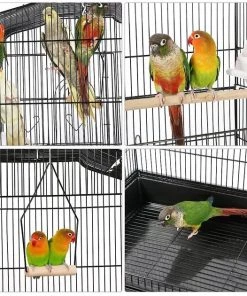- Features 4 polished wooden perches and 4 eco-friendly feeders.