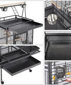 See your sidekick soar in the Yaheetech 68.5-in Rolling Bird Cage & Playtop. This large bird cage features a ladder and wooden perch on the top for playtime with your pal. It is constructed to be spacious and stable using premium, corrosion and rust-resistant metal with non-toxic hammertone paint. This bird cage includes polished wooden perches, stainless steel feeders and four swivel casters for smooth rolling. It is equipped with a metal grill on the bottom that’s complete with a slide-out tray for easily cleaning up after your companion.