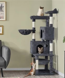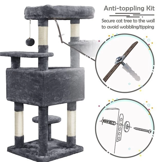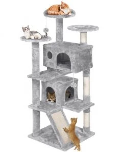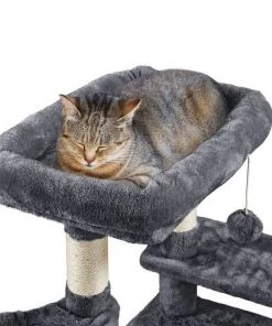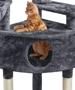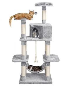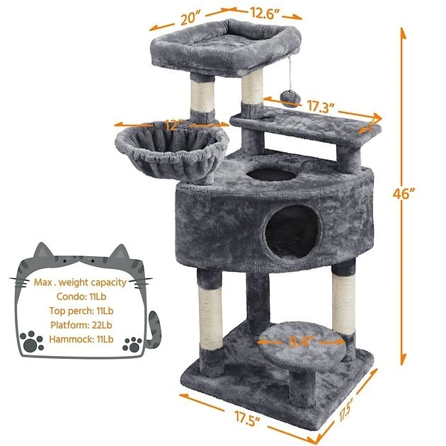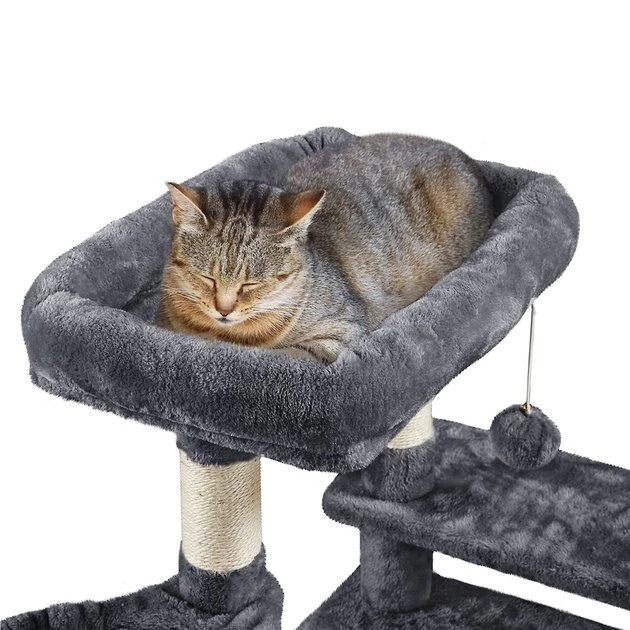 Cats are healthiest when they have mental and physical stimulation—and you can provide them with that when you set up the Yaheetech Activity Tower Basic 46-in Cat Tree in your home. Your feline friend will love the multiple perches, baskets, and platforms for play and rest. This piece of multifunctional cat furniture is crafted of durable materials and is covered with soft, plush fabric for the ultimate coziness.