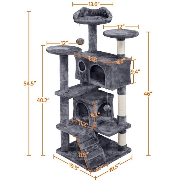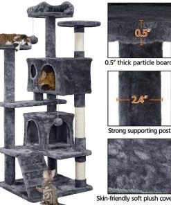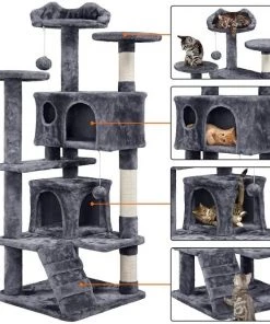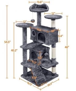 Give your kitties their own purr-sonal space with the Yaheetech 54.5-in Cat Scratching Tree. This cat tree is great for families with multiple feline family members. It’s purr-fect for kittens and small to medium-sized cats to climb, play, scratch and have some alone time. Two enclosed condos with doors and windows give your kitties a hiding spot, while three perches allow your cats to look out over their home. It also includes a safety strap to help secure the cat tree to a wall, which helps prevent your cat from getting hurt when leaping off the tree. Plus, this cat tree gives your cats to something to scratch that isn’t your furniture!