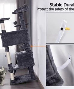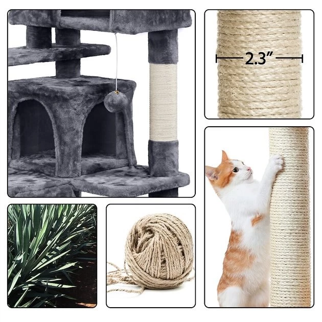 - Includes a safety strap to help secure the cat tree to a wall, which helps prevent your cat from getting hurt when leaping off the tree.