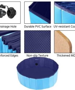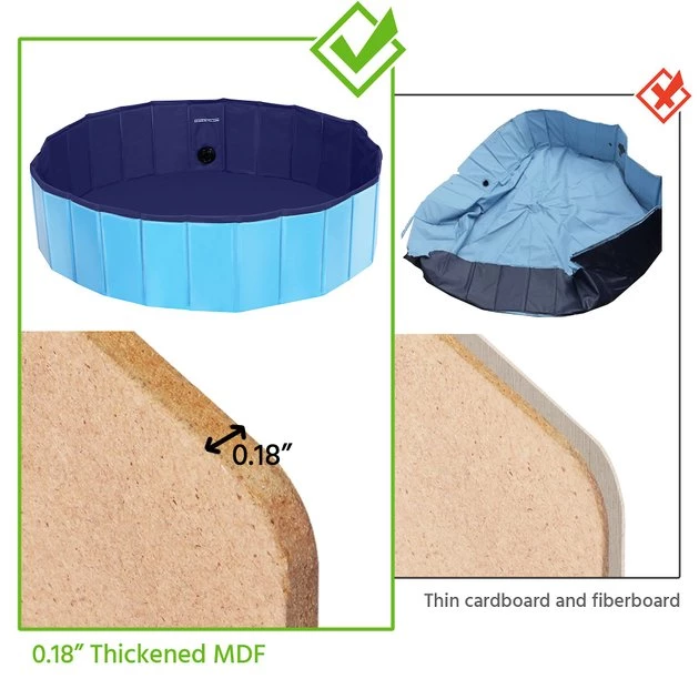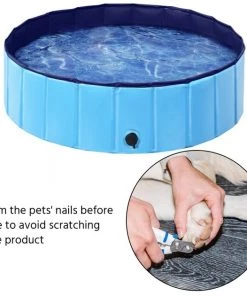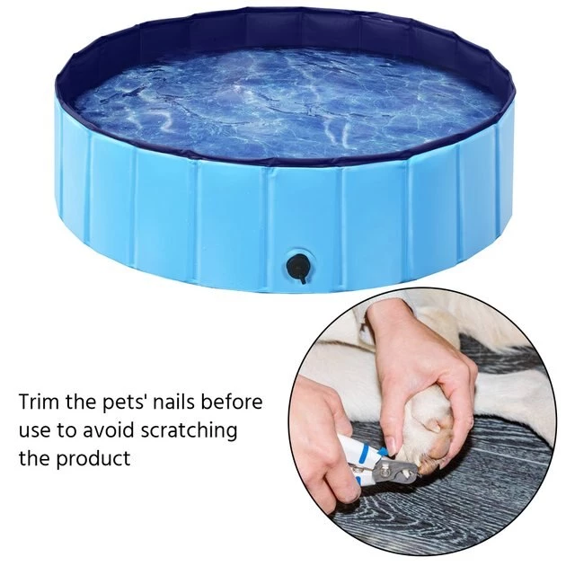 Our professional pet swimming pool has a maximum water level inside of the wall. Do not exceed this line when you fill water. To prevent damaging the pool, remember to trim your dogs nails. To ensure the normal use, please place the pool on the flat and smooth ground without sharp objects. The last thing is that always put the swimming pool in the shade.