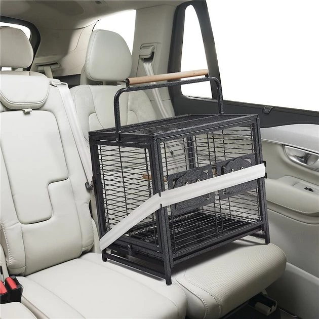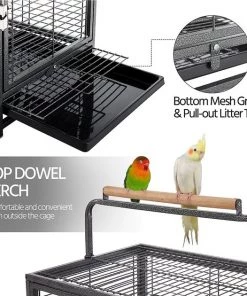 - The cage handle is topped with a wood dowel to offer birds a comfortable place to perch outside the cage. The top handle also makes transporting much easier for you!