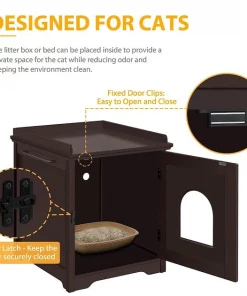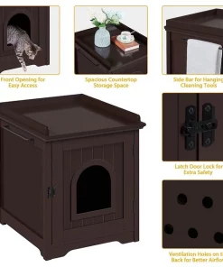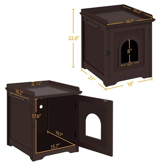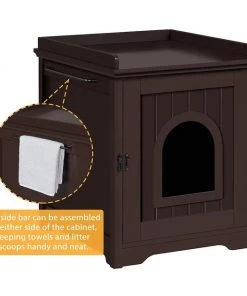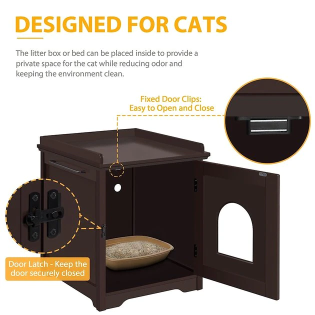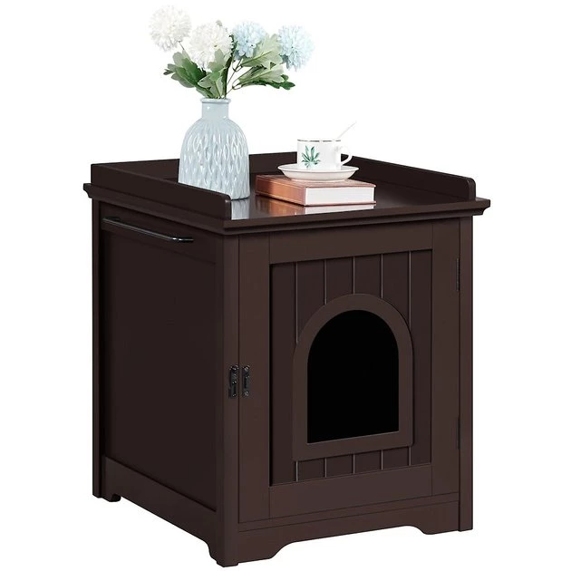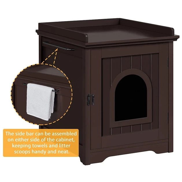 Keep your pal’s commode out of sight while saving precious space with Yaheetech Loo Cabinet Indoor Cat House. Constructed of durable medium density fiberboard, this cat house has convenient features like side towel bars, a magnetic door catch and latch—as well as non-slip rubber pads that will keep it firmly in place. Its water-resistant finish makes it easy to clean and maintain, while the ventilation holes keep air circulating so your pal stays comfortable. Additionally, the flat top surface allows you to maximize your space by letting you store household items on it, like towels, light fixtures, and more. Its full swing door allows you to have easy access to the litterbox so you can keep everything nice and clean for your feline overlord.