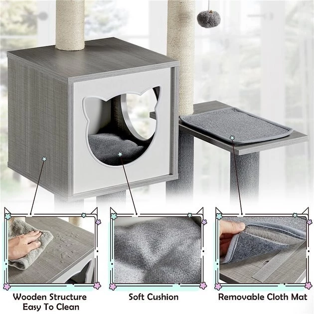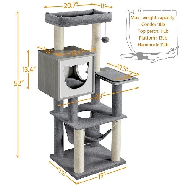 - Thoughtful design allows you to configure the cat tree to your liking.