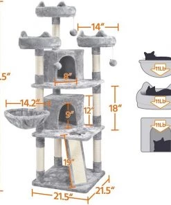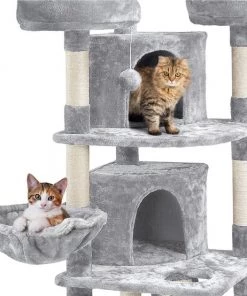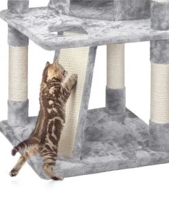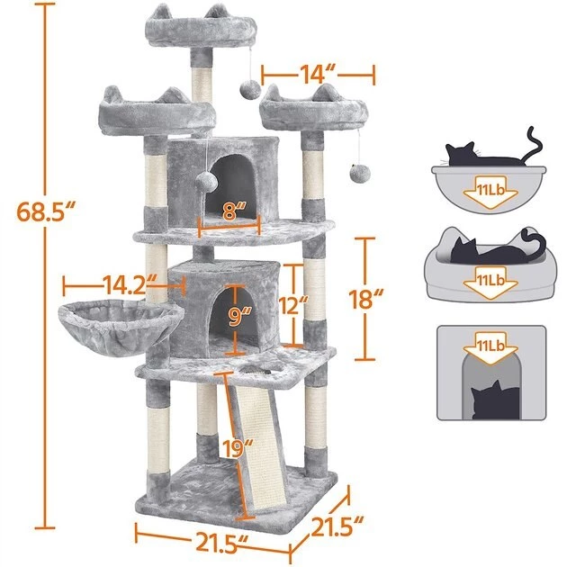- Includes 2 condos, a basket, 8 scratching posts, a scratching board, and 3 toy balls.