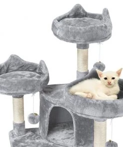Cats are healthiest when they have mental and physical stimulation–and you can provide them with that through the Yaheetech Multi-Level 68.5-in Cat Tree. It’s made from soft materials supported by durable plywood, and there’s multiple spots for playing, sleeping, and exercising. Bonus? The three perched platforms at the top are designed to look like cats’ ears.