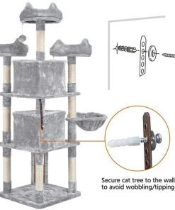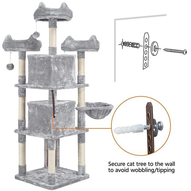 - Anti-toppling screws provided to secure the cat tree to the wall.