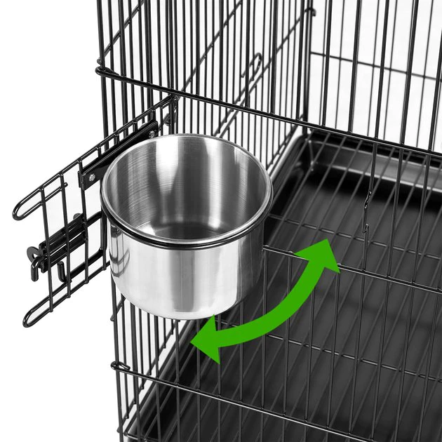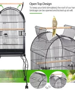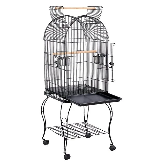 Give your fine feathered friends a fine place to stretch their wings with the Yaheetech Open Top Rolling Metal Parrot Bird Cage. This spacious bird abode features an open play top that lets your bird buddies perch, play and interact with you! It comes with two feeders and two sanded wood interior perches to help your birds feel comfy and right at home. The detachable rolling stand with a shelf makes for easy moving and tidy storage, while the easy-clean slide-out tray makes maintenance a breeze. This cage is a wise choice for pet parents seeking versatility and ease!