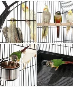 - Roomy bird cage features an interactive play top that can be propped open with the included perch or closed to keep birds safely in.