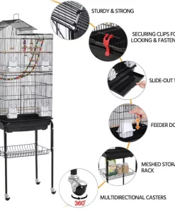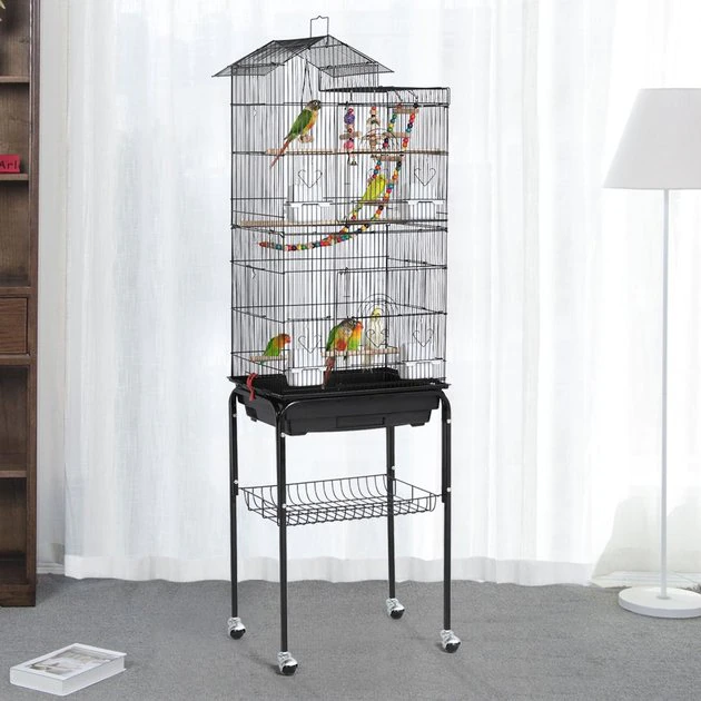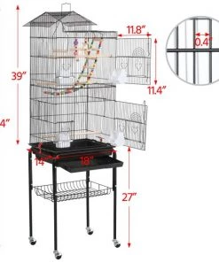 Give your little birdies a home worth chirping over with the Yaheetech Rolling Metal Detachable Stand Bird Cage. This spacious cage is the perfect size for housing several small-sized birds, including canaries, budgerigars, cockatiels and parakeets. It comes with four eco-friendly feeders, three polished wooden perches, two toys, a ladder and a swing, so you will have everything you need to create a sweet home and playground for your little buddies. The detachable rolling stand provides easy maneuverability as well as storage for bird food, toys and cleaning tools. This cute bird cage is easy to assemble and made from durable, eco-friendly materials—your birds will love it and so will you!