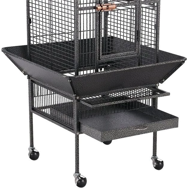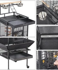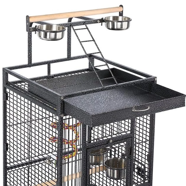 Give your feathered friends some extra freedom with the Yaheetech Rolling Metal Parrot Cage with Playtop. This bird cage features a special open playtop designed to let your bird stretch her wings and socialize. Smooth-rolling casters make it easy to reposition the cage indoors or outside on a beautiful day. Plus, the slide-out tray makes cleanups a breeze. This spacious cage is great for several small birds to call home, including lovebirds, budgies, cockatiels, green-cheeked conures, sun parakeets and more.